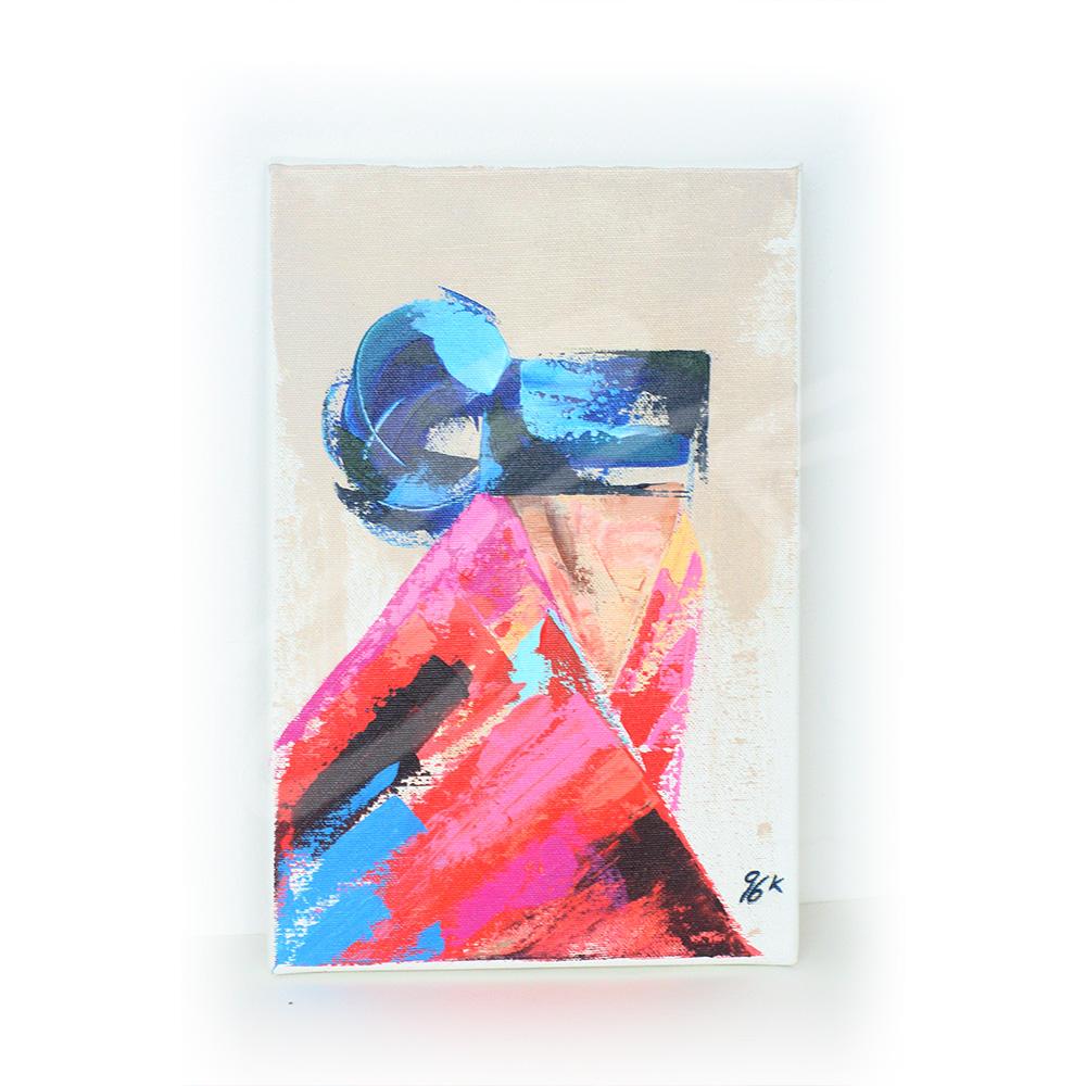 Je l’ai peinte à l’acrylique et au couteau sur un toile de cotton de 20×30 cm. L’œuvre est texturée, colorée et vivante, mettant en lumière l’élégance et la richesse culturelle de cette tradition.