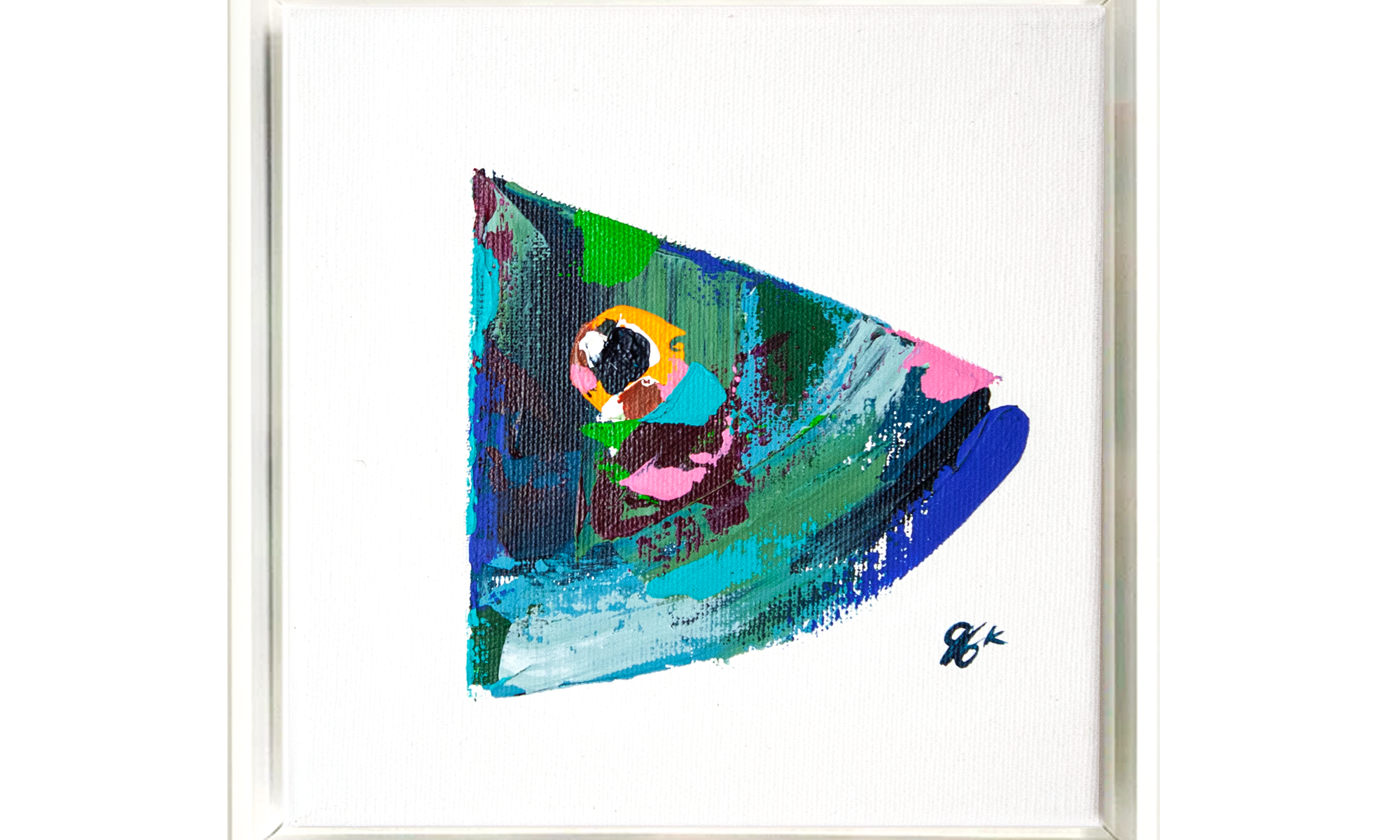 Peinte à l’acrylique et au couteau sur un châssis en lin de 20×20 cm, l’œuvre est texturée, colorée et vibrante, évoquant la richesse de la vie marine et l’héritage maritime de cette ville.