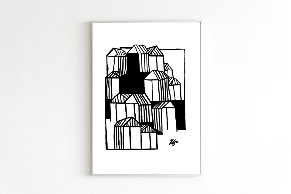 Cette illustration est intitulée  » Baracas  » inspirée des cabanes de plage typique du Portugal.