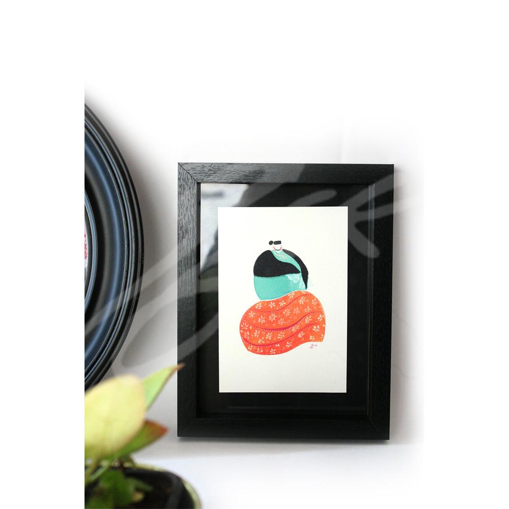 Peint à l’encre de Chine et aquarelle. Imprimé sur du papier 300g Premium.