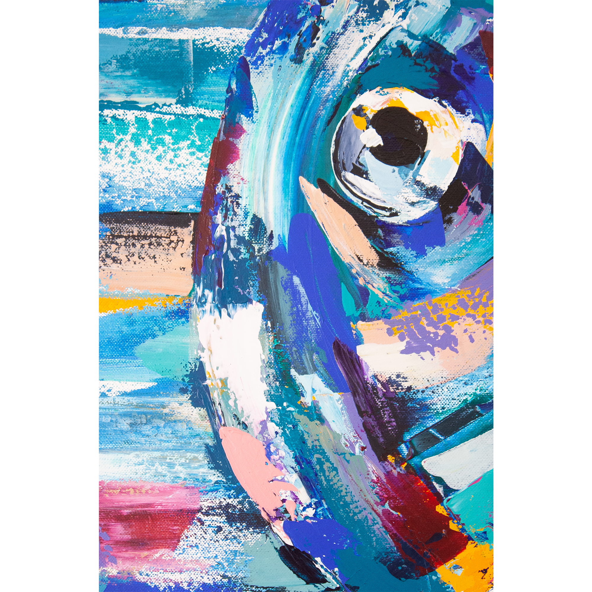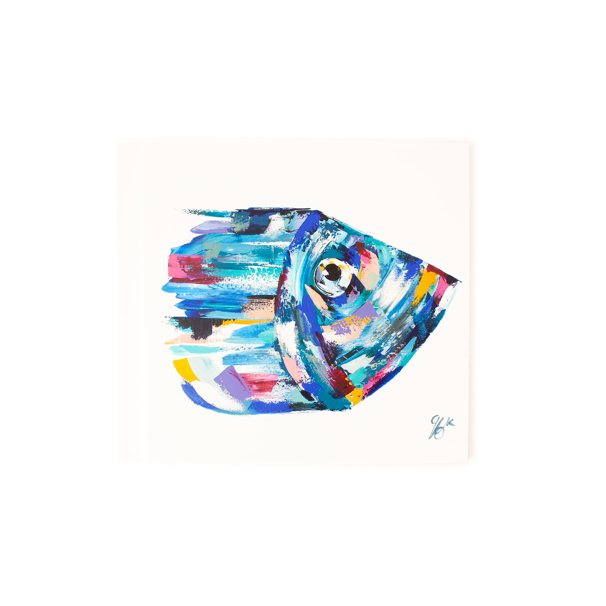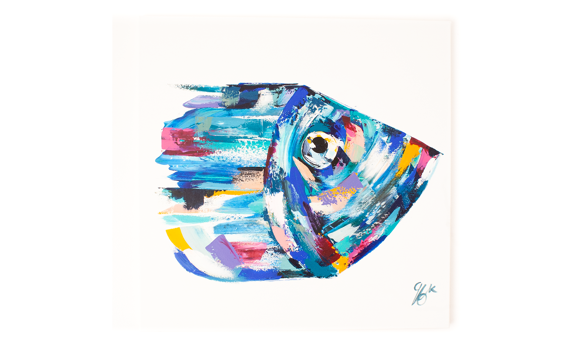 Peinte à l’acrylique et au couteau sur un châssis en lin de 60×60 cm, l’œuvre est texturée, colorée et vibrante, évoquant la richesse de la vie marine et l’héritage maritime de cette ville.