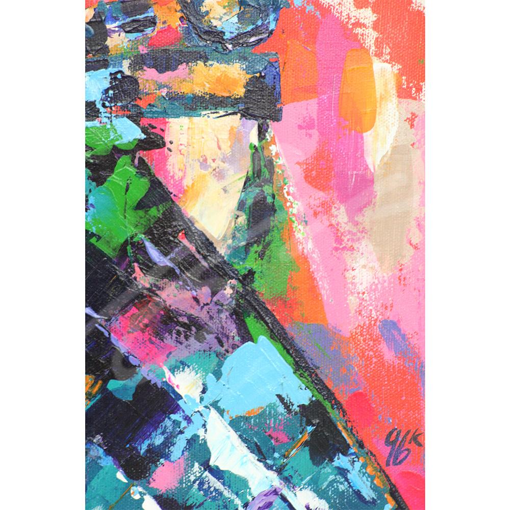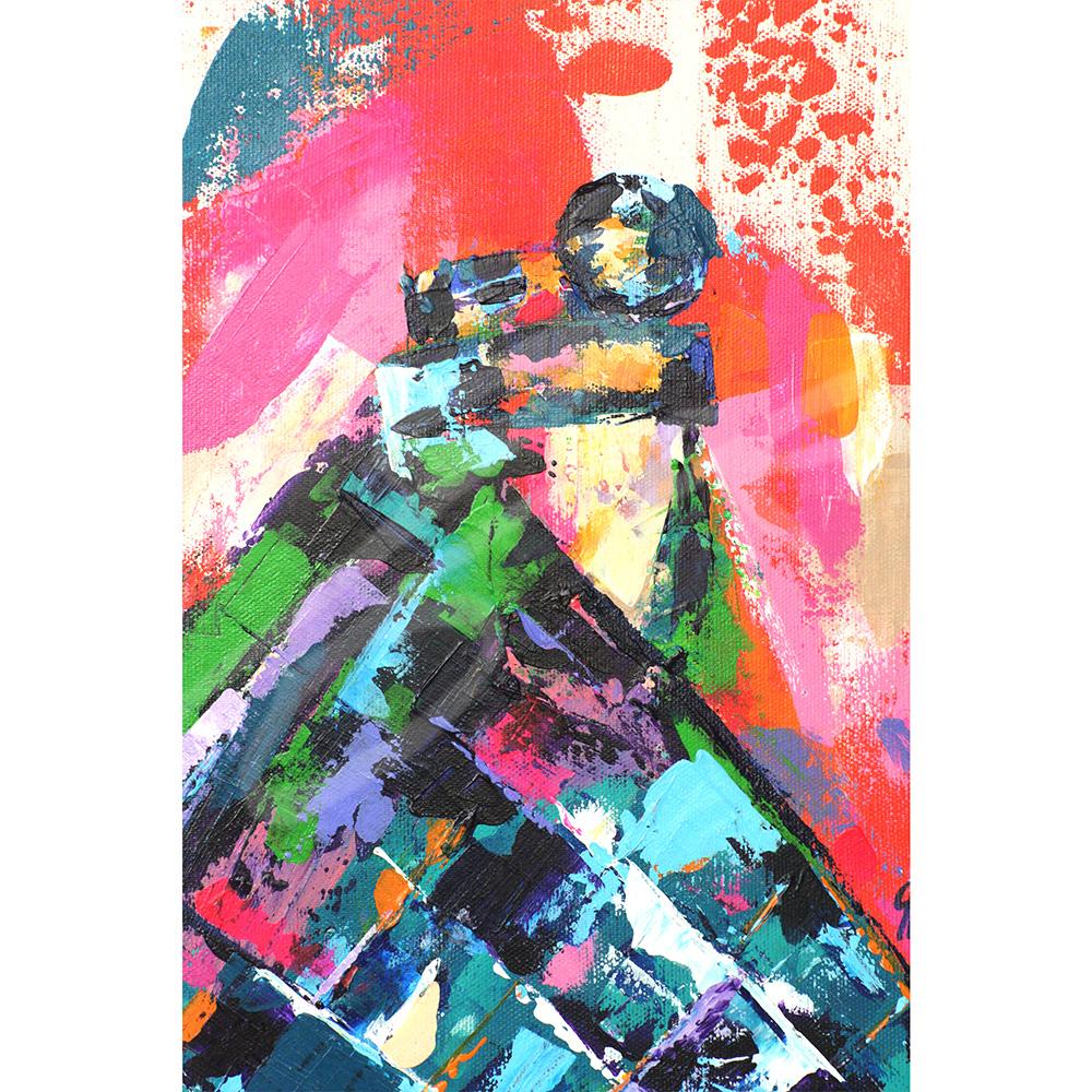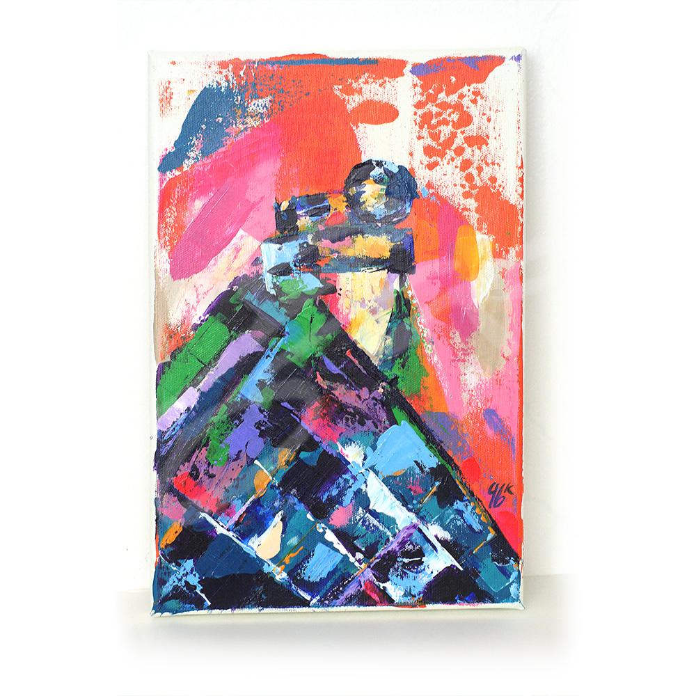 Je l’ai peinte à l’acrylique et au couteau sur un toile de cotton de 20×30 cm. L’œuvre est texturée, colorée et vivante, mettant en lumière l’élégance et la richesse culturelle de cette tradition.
