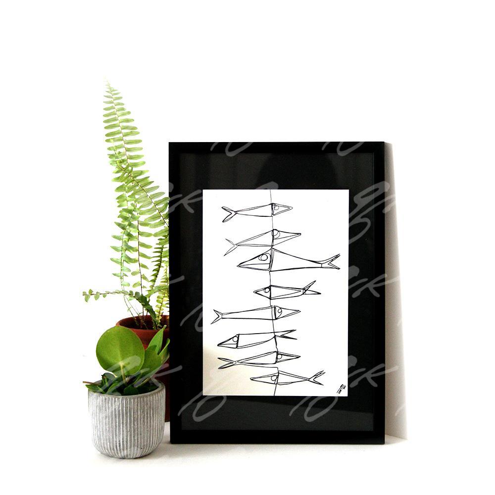 Peint à l’encre de chine en une seule ligne continu sans lever la main . Puis imprimé sur du papier 300g Premium.