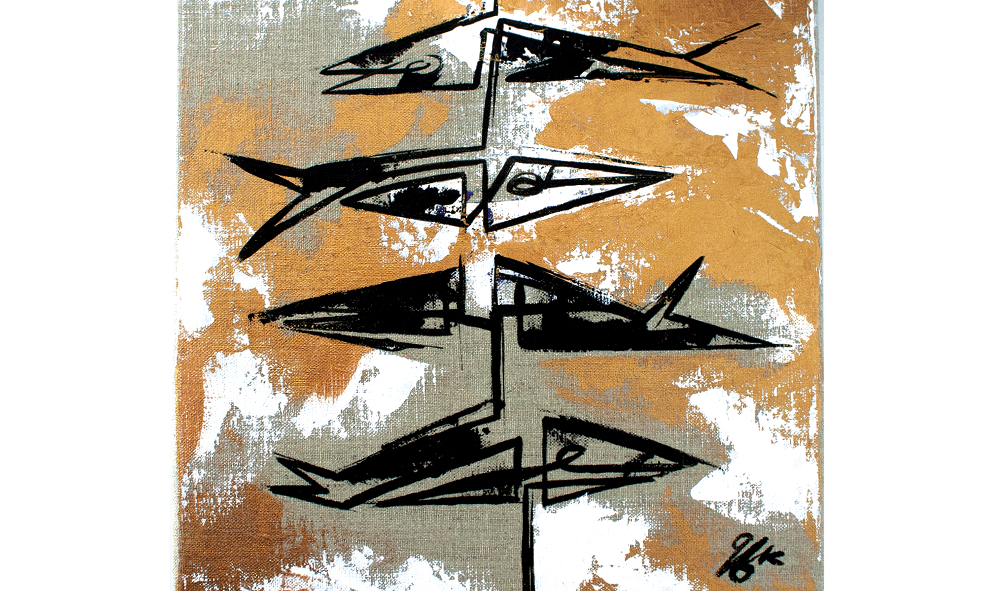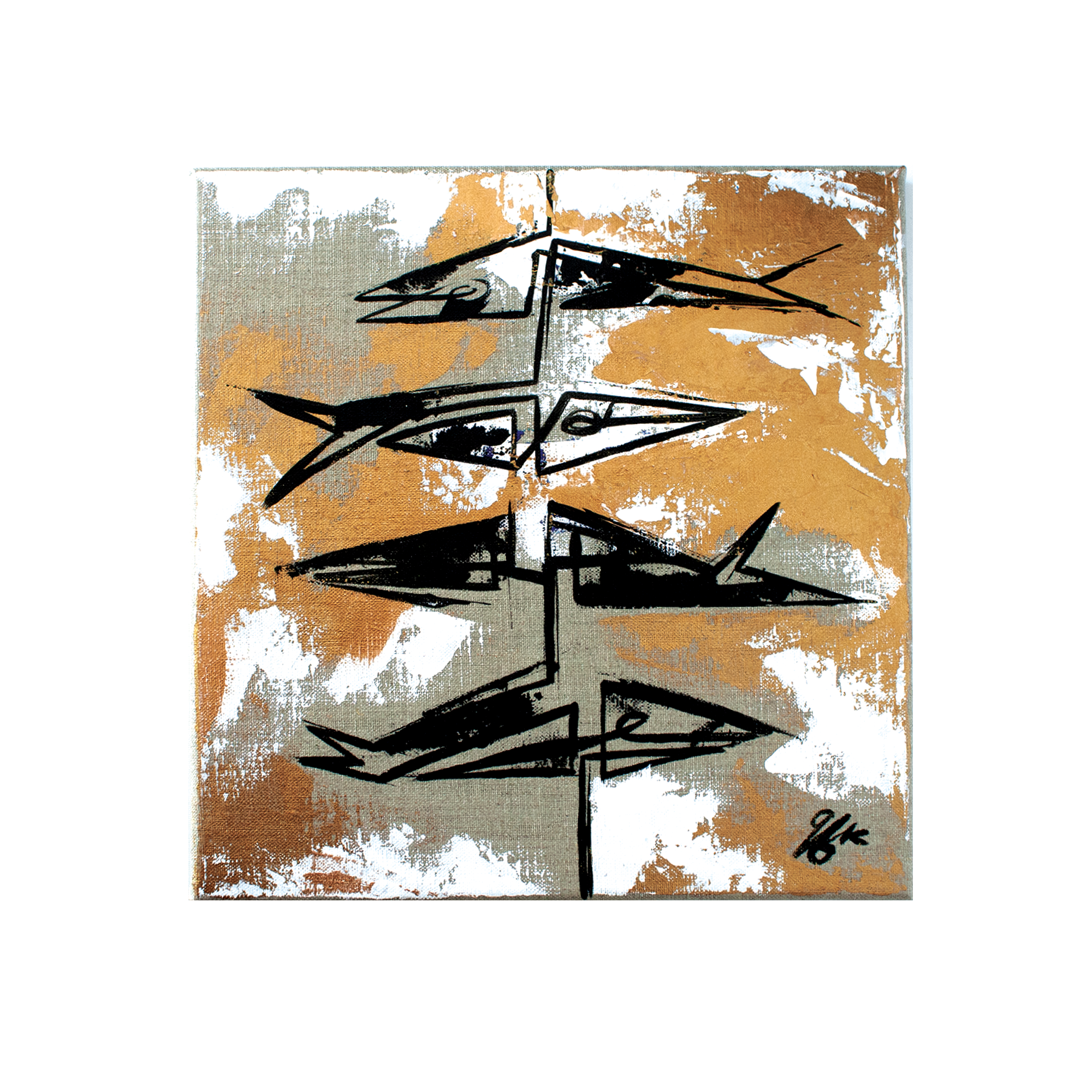 Peinte à l’acrylique en une seule ligne continue, avec des details au couteau doree peint sur un châssis en lin de 30×30 cm.