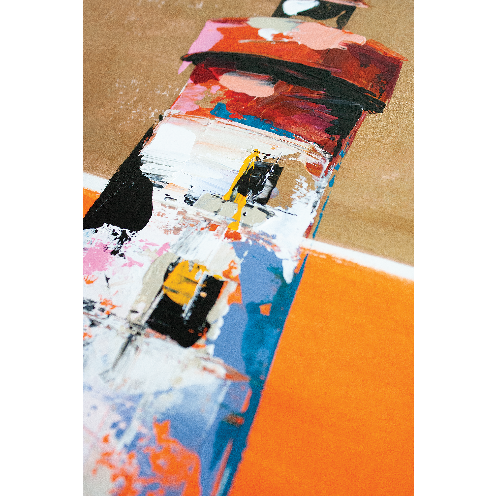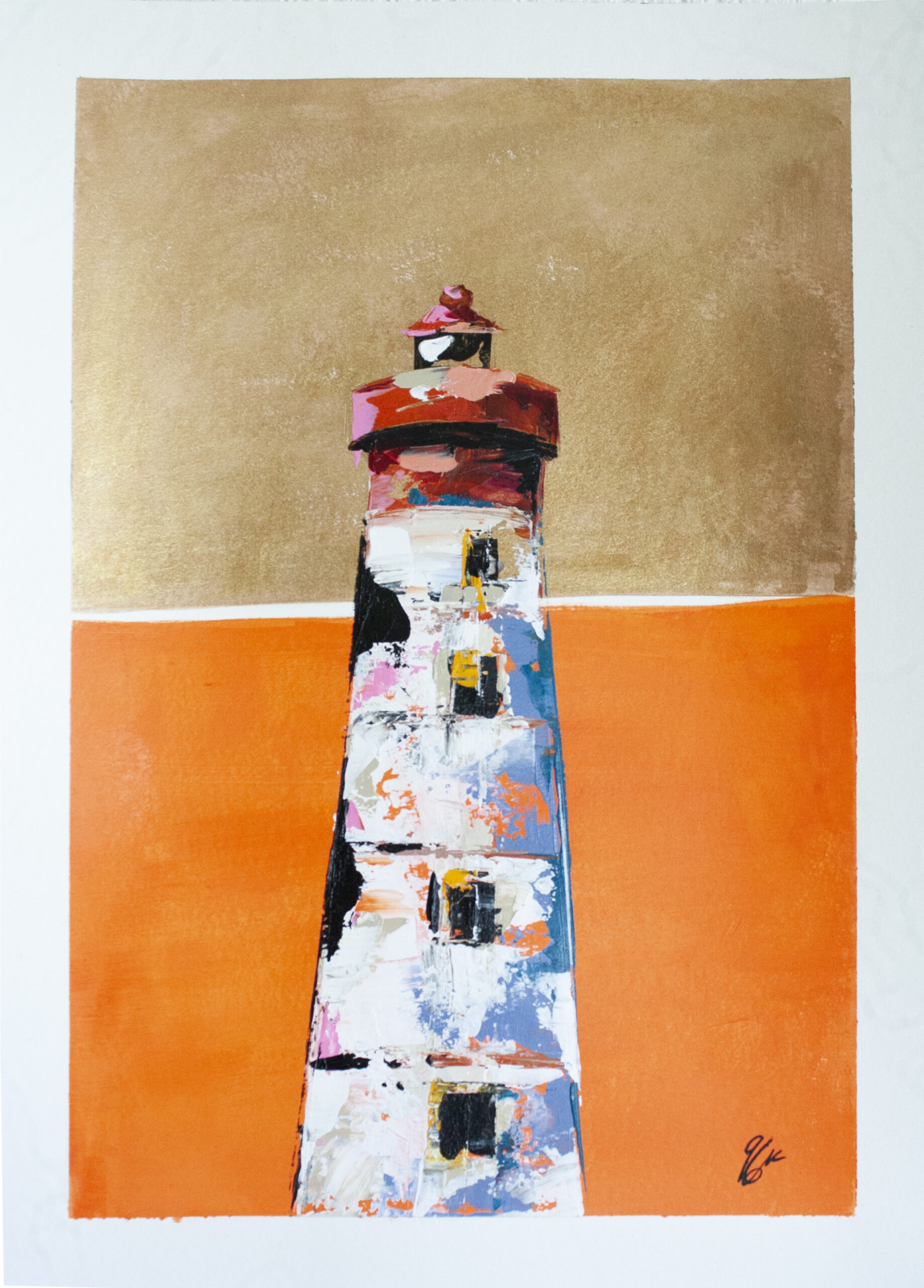 Peinte à l’acrylique sur papier 300g, l’œuvre est texturée, lumineuse et évocatrice, illustrant la beauté sauvage et la puissance maritime de cette région. Les coups de couteaux dynamiques et les nuances de bleu gris avec le contraste rouge reflètent l’atmosphère unique des paysages bretons.