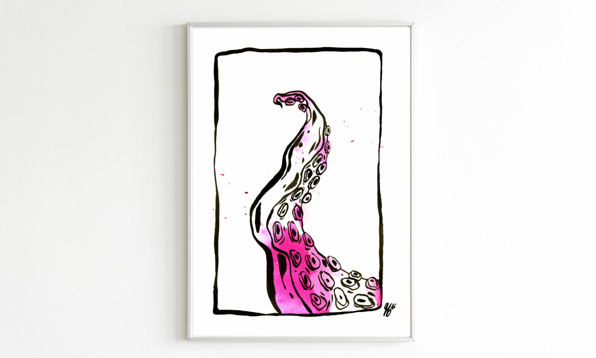 Cette illustration est intitulée « Polpo rose » inspirée de mon plat préféré portugais le poulpe à l’ail et huile olive