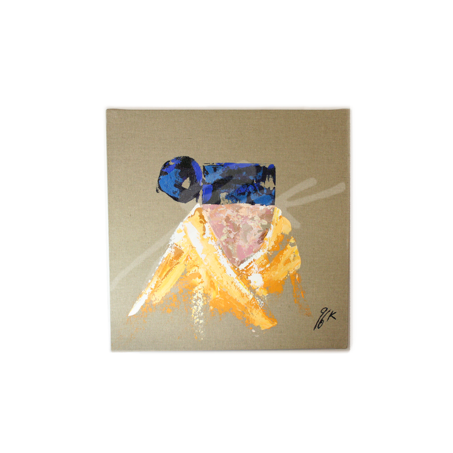 Je l’ai peinte à l’acrylique et au couteau sur un toile entoilé de 40×40 cm. L’œuvre est texturée, colorée et vivante, mettant en lumière l’élégance et la richesse culturelle de cette tradition.