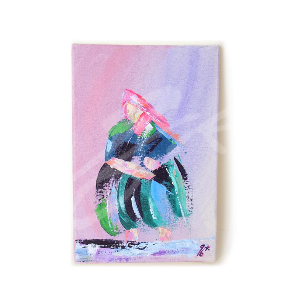 Je l’ai peinte à l’acrylique et au couteau sur un toile entoilé de 20×30 cm. L’œuvre est texturée, colorée et vivante, mettant en lumière l’élégance et la richesse culturelle de cette tradition.